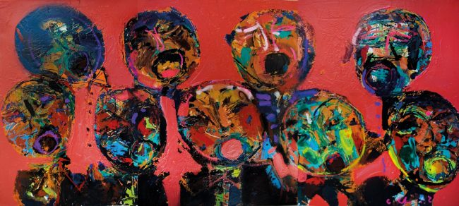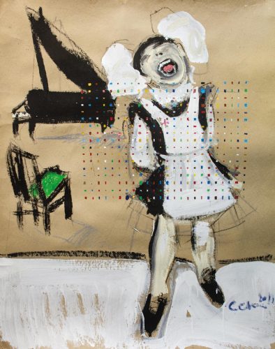 Quelques jours plus tard, jour de la fête des artistes célébrée en Ukraine, Serhij Savchenko a publié sur Facebook un texte, un cri lucide sur la mission de l’artiste et sa condition. C’est comme si les figures rondes et si colorées, les chœurs de sa série « Les chantants » nous lançaient ce cri vibrant : « Prenez soins des artistes et respectez leur travail ! »