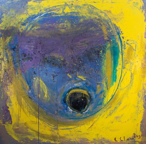 L’Opéra, c’est un lieu où la culture se fait vivante. Il y a dans cette série, une dimension dramatique inscrite dès le départ. Ces figures semblent chanter, crier, mais dans des scènes silencieuses. Dans ce drame d’une prémonition existentielle, une certaine solitude s’y cache. Pour simplifier, je dis souvent que c’est un écho au Cri d’Edvard Munch, avec cette bouche ouverte — un gouffre noir que l’on retrouve plus tard dans le noir de Malevitch, et ces cercles qui sont présents tout au long de l’histoire de l’art. C’est un lien avec ce monde artistique que je connais — toujours marqué par un certain drame existentiel, par le non-dit à travers lequel nous passons. L’art, comme l’opéra où l’on regarde, écoute, contient toujours une part d’indicible : un cri silencieux, un silence habité. Les grands formats, ces forment circulaires accentuent cette impression, ils cherchent à frapper le regard, à ne laisser personne indifférent.