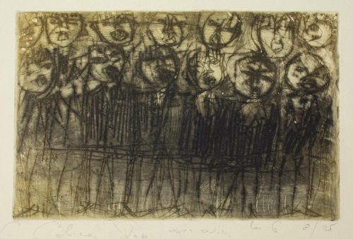 La série Les Chantants fait référence à l’idée du récitatif : des visages arrondis et répétés, aux bouches sombres et béantes, composent un rythme qui rappelle Le Cri d’Edvard Munch, tout en le transformant en un « cri-silence » — des voix qui résonnent avant de s’éteindre dans le silence.