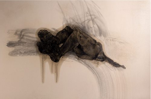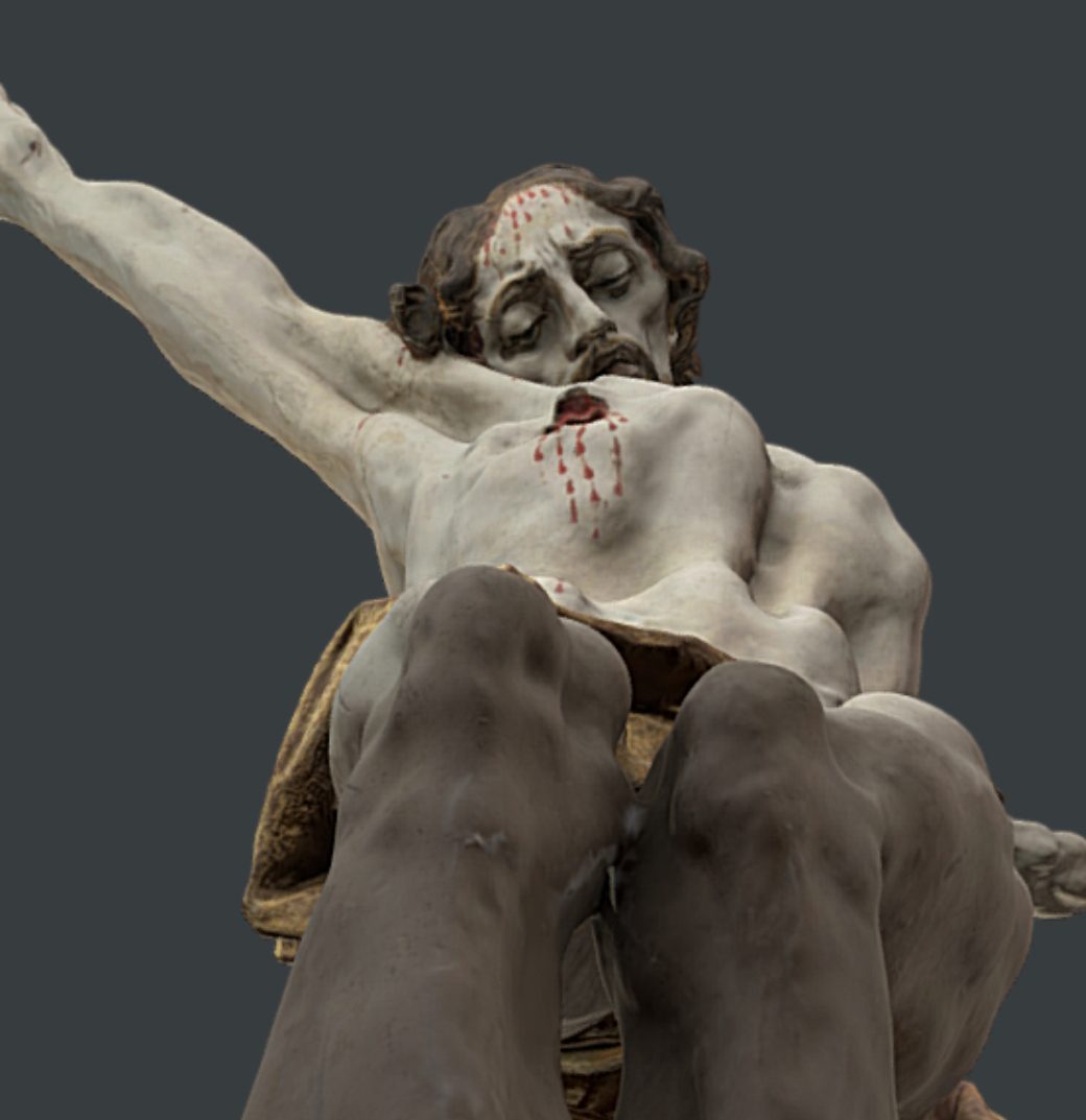 L’exposition présente sept œuvres, fruits de la contemplation d’un crucifix, œuvre de Johann Georg Pinsel, sculpteur baroque considéré comme l’un des plus importants artistes galiciens du XVIIIe siècle. Elles sont toutes réalisées sur papier selon la même technique — graphite et huile — et ont le même format. Grâce à la répétition du format et du matériau, la série fonctionne comme une surface unique et cohérente, permettant de se concentrer sur les images elles-mêmes.